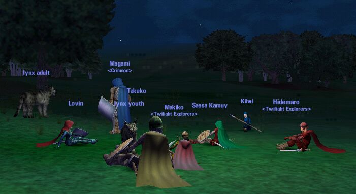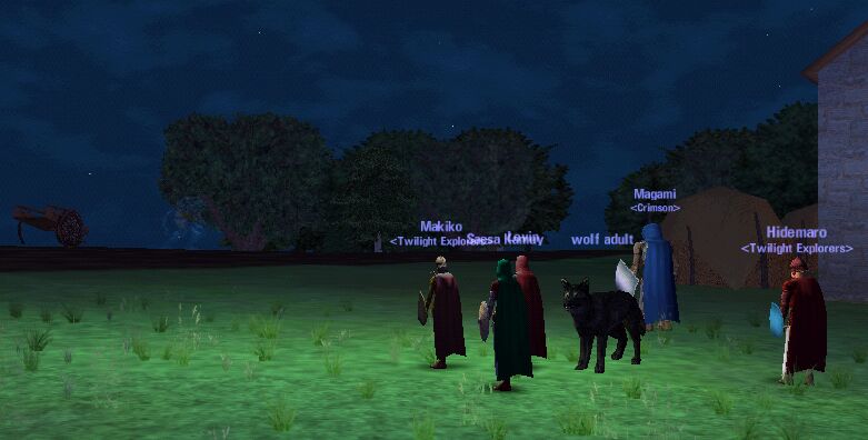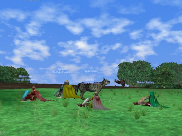 畑荒らしは、自分らではありません。念のため(笑) Hidemaroの誘いを受け、Mag Mellの対岸にある畑に行きました。 のどかな田園風景浸る、Party一行…。 |