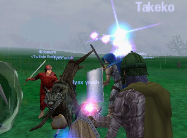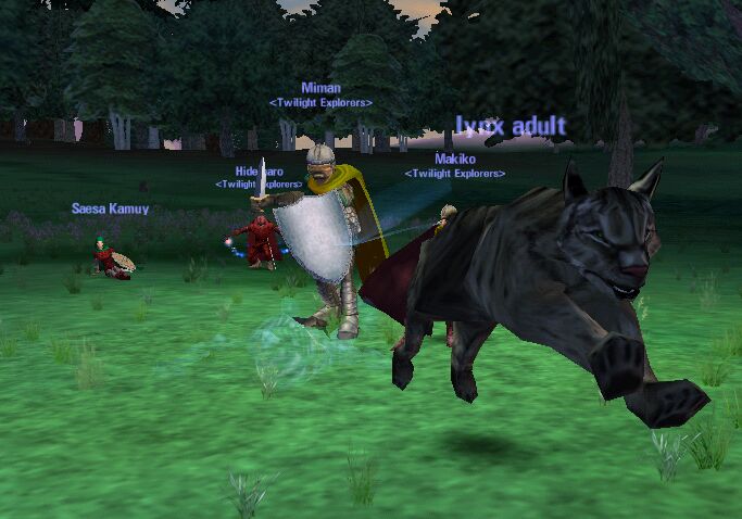 MimanのPet…ではありません。(Nice SS だ!) 畑には、半透明のグレムリンみたいのがいて、そいつを狩ってました。 皆のLvは19-20で、私はLv13… 紫相手にmiss miss miss... SaesaのLv20Pet強すぎ… |