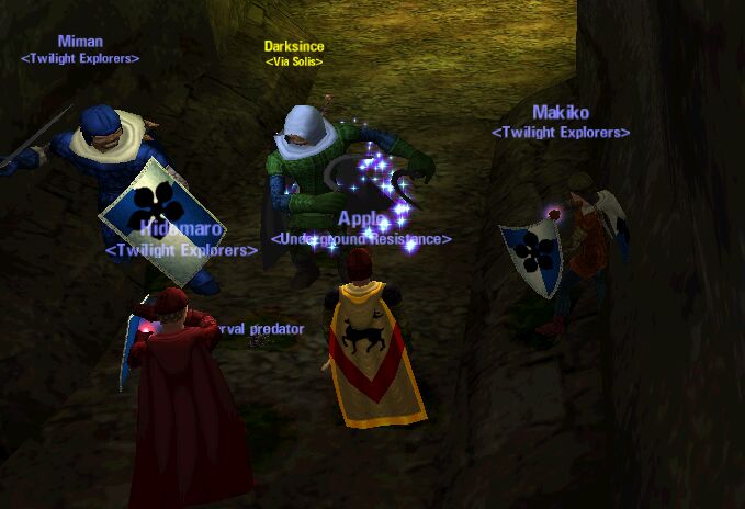 Twilight Explorers と Crimson合同で馬狩り (というか、たまたまそうなってた) Crimsonって、同レベル帯の人が多いので組むこと多いのかも。 3 wardenなので、泡をさぼって剣を振る! Side Attackは場所取りが大変…、だけど強いねー。 |