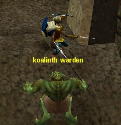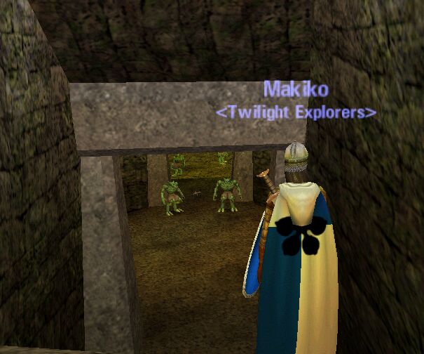 3rd Dungeon? の Kaolinth Cavesへ。 ここらは、強い巡回Mobが居て怖い。 入り口には、ガードが4pop。もちろんKoSで、部外者を警戒している。 Lv25からは、Blue & Greenでソロ可能。 |