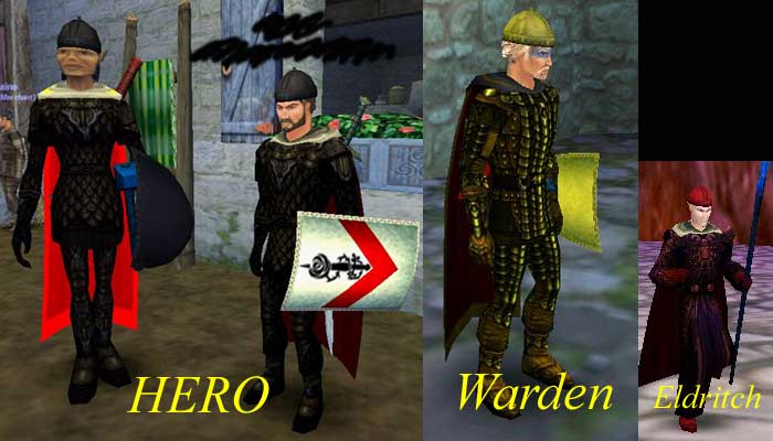 新鎧グラフィック導入を盗撮w 左から、Hero, Warden, Eldritch。 Hero, Eldritch は、格好ええ!! Warden は…。 Makiko も黄色系なのでああなるのかと考えると、やる気減(笑) ( Zippo みたいだと本人談… ) |