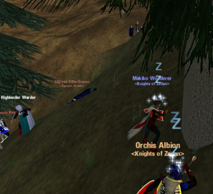 Cinnaと仲良く寝る。 AMG にて Albionを追いつめたところに Midgardが背後から。 ここら辺の奇襲は、何時もうまいな〜と思う。 Makiko(Healer)はRange2000なので、最後尾にいることもあり…。 |