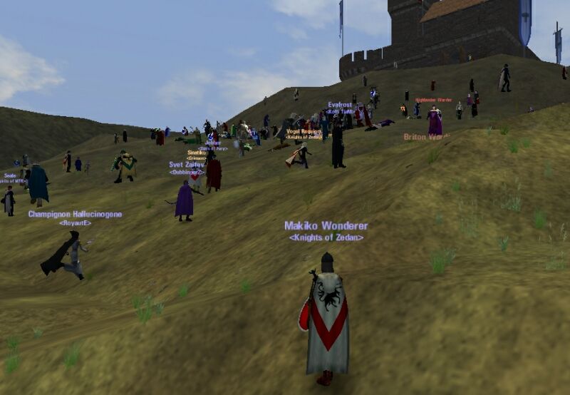 本体に合流しようと移動中。 Sursbrooke付近でAlbionの1grp… 何度か近くを通ったけどばれない。 (全員Celtだとばれないかも?w) こっちは数が少ないのでやり過ごす。(後続も居た) 実は、本体壊滅済みなのを知らない我々(笑) |