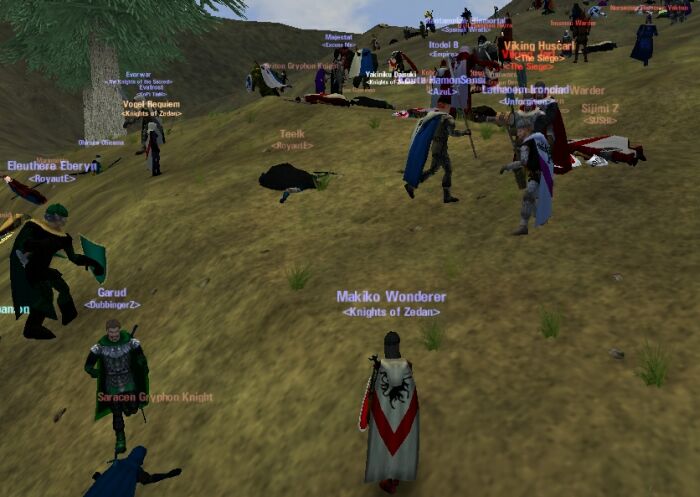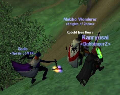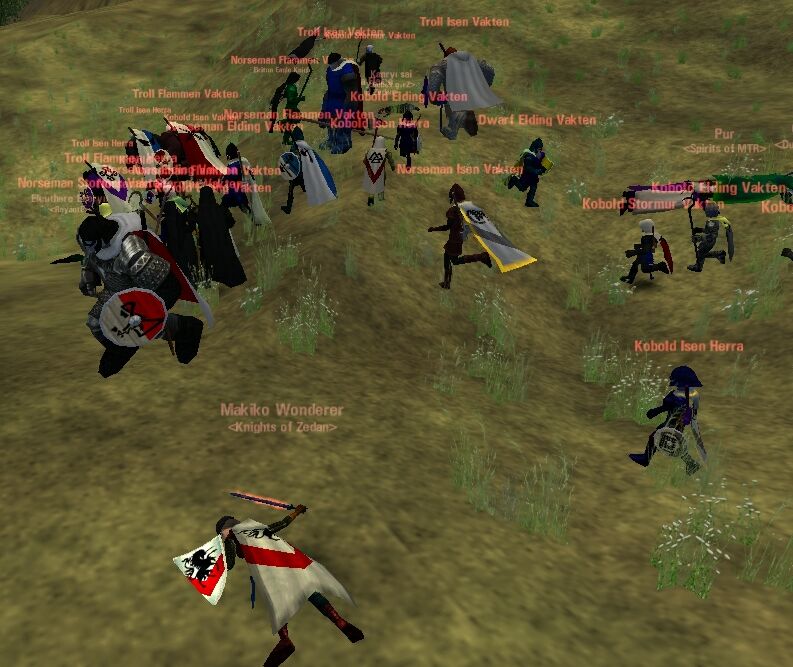やっぱゲリラって好きだな〜 隠れて通行人を狩るってやつ。 Hibは何時もAili-Bolg付近でやられてますけどね。 Zedanに、Majestat(Champ)とTondemonaina(Hero)が加入した。 一時期はCinnaの1Tankだったのに比べてかなりの戦力強化。 (後はCasterが増えれば…。誰か来ない?w) Zedanの双璧(Macha/Naony)が、Zedan四天王(Macha/Naony/Maje/Tondemo)に。 まだまだ楽しめそうだ。 MakikoとOrchisの最下位争いも見逃せないぜ(笑) Emainでは、大群同士で当たることが多い。 そこで、ギルドグループとしてうまく動ければなぁと思う。 たとえば、最右翼から突撃するとか、退路を断つとか。 1人で行ってもカモだが、1grpなら戦局を変える動きが出来そう。 Emainに行く以上、大群同士で当たるのはどうしようもない。 それなら、その中でいかに楽しみを見つけるかだと思う。 |