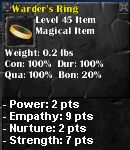 Quest:Unnatural Powers Level : 43 以上 そこそこの性能。 DF産の、Reg/Nut+1 Ringと迷うところ。 ※ Warden専用 |