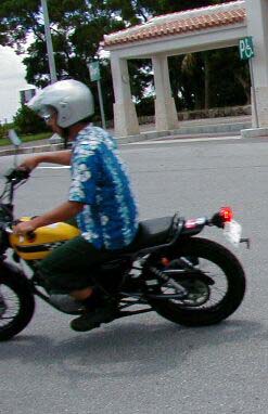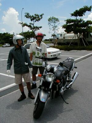 それぞれのバイクにまたがり那覇を出発。 (借りたかったFTR,VTR共に事故やパンクで無理だった…) |