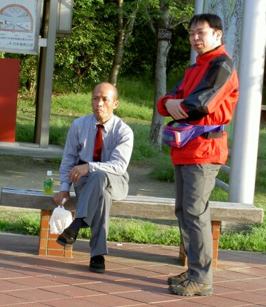天気は曇り、降りそうだが降ってない。防寒の為にカッパ着用。