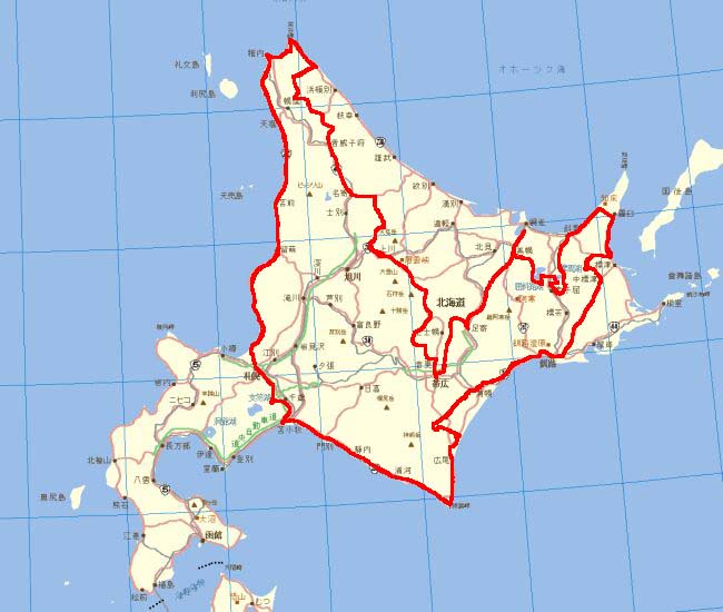 本編 1日目:北海道上陸。千歳〜札幌 2日目:北上開始。札幌〜浜益〜羽幌 3日目:最北端、海へ。羽幌〜稚内〜咲来 4日目:大自然の中を。咲来〜三国峠〜然別湖 5日目:田園は続く。然別湖〜帯広〜網走 6日目:霧の湖畔にて。網走〜屈斜路〜知床 7日目:雨のミルクロード。知床〜釧路〜音別 8日目:長距離走行。音別〜襟裳〜苫小牧 9日目:帰還。苫小牧〜千歳