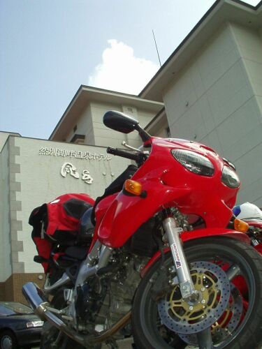 場所がわかりにくく、迷いながら宿に到着。 ここは民宿にライダーズハウスが併設の様だ。 民宿部屋を半ば強引に勧められたので そこに泊まる事にする。 |