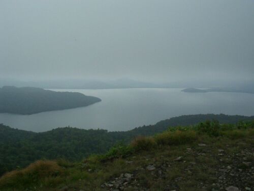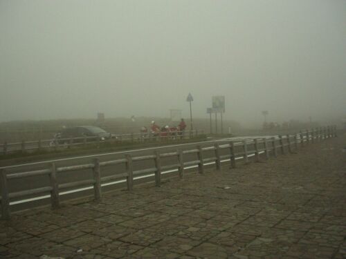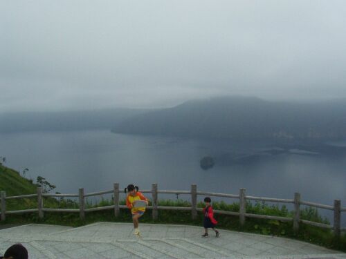 美幌を抜けて美幌峠を走る。 空いていて、なかなか良い感じ。 10:00頃、峠に到着。 峠の上はガスがかかっていた。 ここからは屈斜路湖が見える。 |