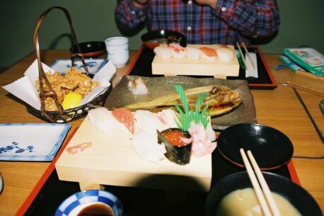 羅臼には海馬(トド)が食え店がある。 期待して行くも、17:00なのに閉店… しょうがないので寿司屋へ。 まるこし と言う店で寿司を食う 寿司は鮭、いくら、ホタテ等。 ホッケがうまい(酒のみたい…) 会計\9780なり。 |
