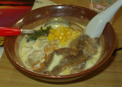 摩周湖出たところでミルクハウスという飯屋が。 牛乳ラーメンに惹かれて、昼飯ということに。 二人ともホワイトラーメン(\1500)を食う。 クラムチャウダーの様なスープのラーメンで なかなか美味い。 むつみやの北の恵ラーメンと似ているかな。 知床方面と言う事で道を検討していたが、 時間もありそうなので、裏摩周に行くことに。 裏側の方が道道で楽しそうだし。 と言う事で、R423から道道885、道道1115。 快適なツーリングは続く。 |