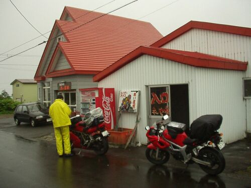 峠は真っ白だった。昼間だと明るいのか? ガイドブックにある晴天時との比較写真を撮る。 (現在スキャナがないので後日掲載) 宿泊先を羅臼と決め、ライダーズハウス 赤い屋根に電話で予約を入れる。 毎回このスタイルだが、ライダーが少ないのか 断られたことがない。 |