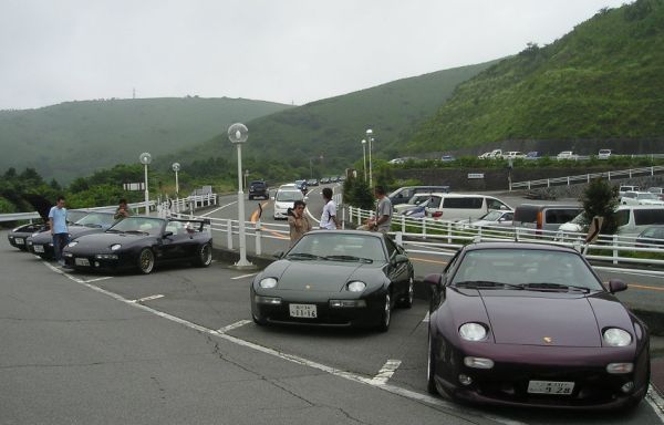 十国峠のドライブインにて、多数のポルシェ928が。 クラブ928ってオーナーズクラブのオフ会らしい。