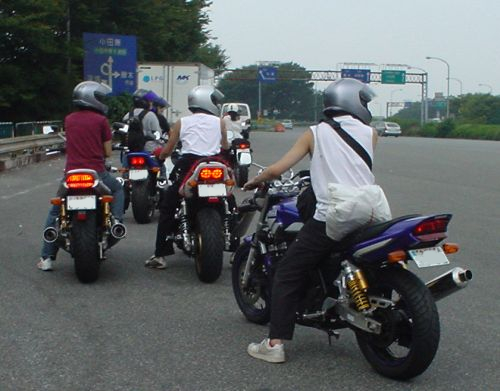 腕を丸出しのライダー達。 危ないと思うんだが…。