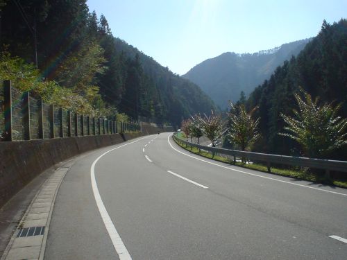 一部狭い道があったけど、山の中の二車線道路は |