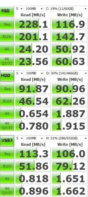 ・SATA接続:HGST HDP725050GLA360(500G、7200rpm) SSDが速いのはもちろんだが、USB3.0が速い。 P.S コメント(3)コメントする |