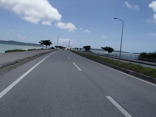 無料の城跡にしては、かなり立派な感じで景色も抜群。 海岸線沿いの道を走って、海中道路へ。
