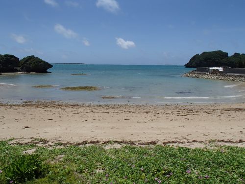 伊計島に渡り、島を一周。島の中はサトウキビ畑が広がる。 そういうところは、海に出られる場所があり、地元民が使うビーチがある模様。 伊計島は面白いところがあまりなく、宮城島に戻って走りなおし(笑)