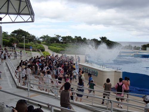 ただ、城以外の施設が充実してて、説明するガイドが無料で付けられたり これで、見たかった城跡は制覇したけど、順位は以下かな。 城跡を出て、海洋博公園に向かう。 駐車場にバイクを止めたら11:00だったので、イルカプールにダッシュ。