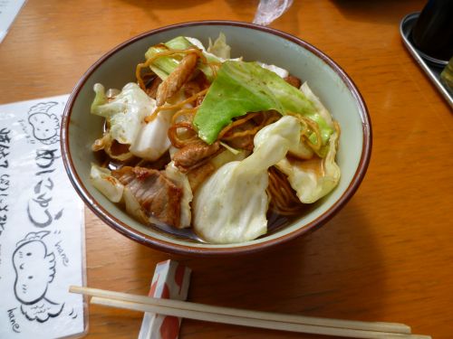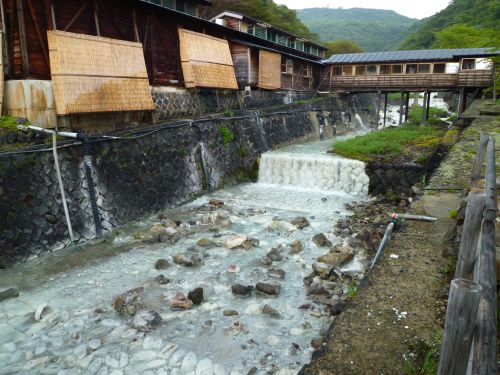 ソース焼きそばに、醤油ラーメンのスープというB級感満載。 昼食後、県道30を東へ向かい県道369へ。 しょうが無いので雨具を着用し、少し早いけど宿へ向かう。 喜久屋旅館に15:00前に到着したけど、そのままチェックインさせてもらう。 時間があるので、温泉街を散策。