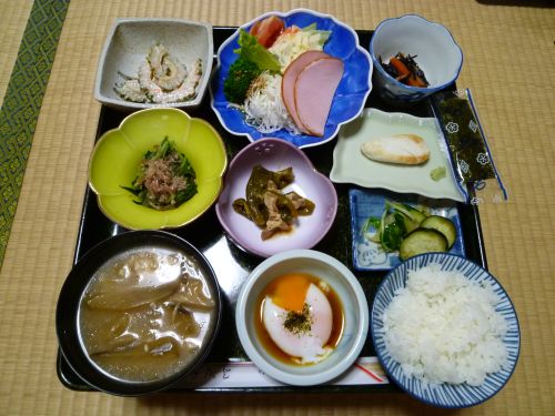 殺生石(九尾の狐伝説)と、温泉神社へ。 酒屋で夜用の日本酒を買い、土産屋でツマミを購入。 戻って宿の風呂(掛け流し!)へ。 夕飯は部屋食。品数も多く、満足できる量でした。 夕飯後に小鹿の湯に入ってきたが、宿の風呂と大差ない感じ。 朝風呂に入り、それから朝食。