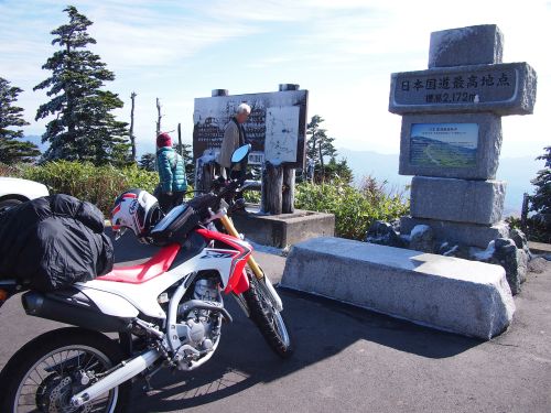 今週末は黒部峡谷登山、なので実家に帰省する必要がある。 せっかくなので、前から走りたかった奥志賀スーパー林道を走るコースで、 2時にセットしたアラームの少し前に起床、睡眠時間は2時間ほど。 登山靴から実家への土産等、北海道ツーリング用のバッグに満載し 京葉道路の幕張ICから市川ICの後、県道1号経由で外環へ。 いきなりだが、三芳PAで休憩。 北海道ツーリングの時は、深夜もメッシュジャケットで走ってたが PAで暖まってから出発。 朝食はカレーうどん、中から体を温める。 碓氷軽井沢ICで降りる。