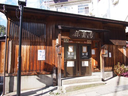 この林道、終点は野沢温泉になる。 ちょうど12時を回った所なので、予定通りに昼食なんだけど そば屋を発見したので、野菜天ざる大盛(1300円)を注文。 天ぷらも蕎麦も美味かった。野沢菜も本場ならでは。 飯を食ったら風呂だろうって事で、無料の共同浴場へ。 駄目だろと思いつつ、泉温を見ると86度とあるので