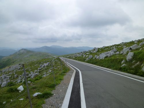 白い石が点在するカルスト台地の道は、道幅は狭く5kmほどしかない。