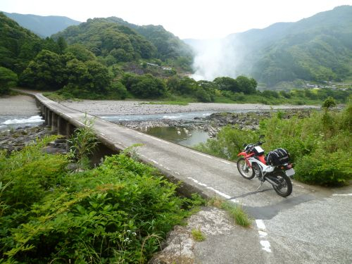 R197を走り、道の駅 広美森の三角帽子で休憩。 ライダーズイン四万十。ライダー向けの安宿で、低価格な事もあって自販機も無い。 とりあえず、風呂&飯調達のために軽装で再出撃。 数分走って、集落にあるスーパーで弁当&酒&茶を購入。 翌日のコースを再確認していると、R381をピストンする必要がある事が判明。 ○ 今日の宿「ライダーズイン四万十」素泊まり:3150円 バイクを部屋の横に駐車できることや、駐輪所にアンカーがあることは評価。 走行距離 288km ---------- 今日の予定は、四万十川沿いを走り、足摺岬を経由して宇和島まで。 計画外の走りが必要になったので、早めの7時過ぎに出発。 折り返し前にコンビニで朝食、BLTサンドと野菜ジュース。 8時過ぎ、R381を戻り始める。