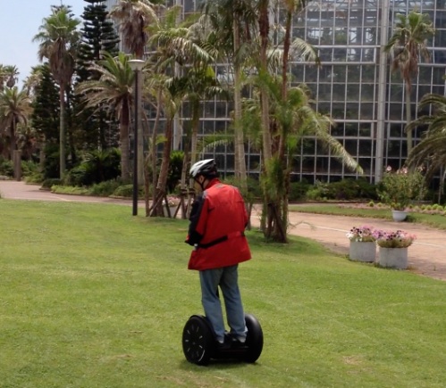 誓約書を記載し、ヘルメットを装着して準備OK。 操縦については、自転車やバイク等のバランス系乗り物に乗ってれば楽勝と思う。 その後、スタッフと芝生の広場まで移動してフリー走行。