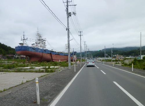 最大水位が1mの石巻駅周辺でも、車は基本全損だった様子。 県道240からR398へ、沿岸部を北上。