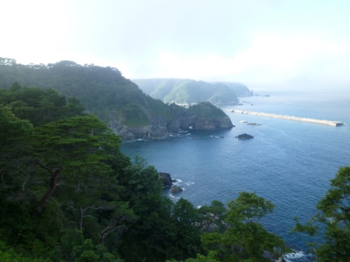 海沿いもず〜っと防壁があって、なんだか異国の雰囲気が。 元々の予定だと、宮古から北上して舗装林道を走る予定だったが リアス式海岸の断崖を見る場所として、有名な鵜の巣断崖が良かったんだけど