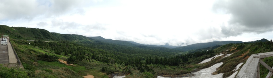 樹海ラインは、アスピーテラインに比べて景色で劣るが、 しばらく走って、八幡平山頂レストハウスに到着。 ※八幡平(はちまんたい)。奥羽山脈北部の山群の国立公園で、標高は1614m。
