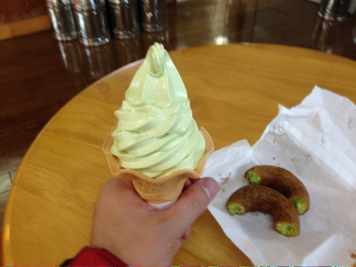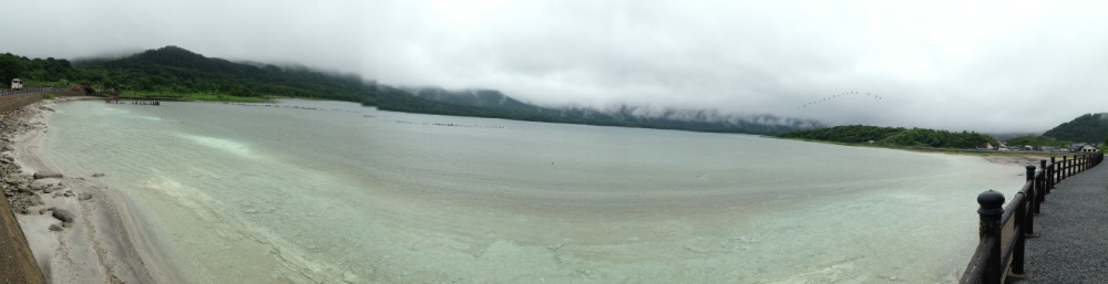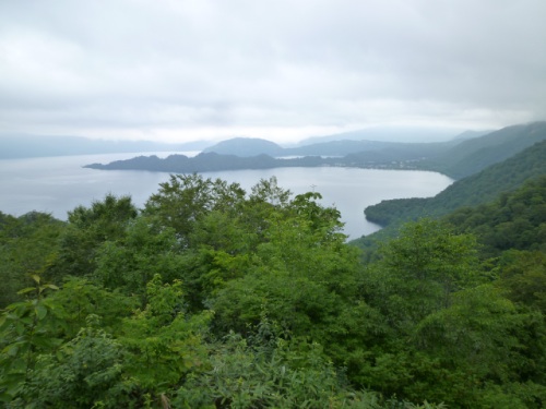 山ぶどうソフトクリームがあったので食べるが、なんだかイマイチ。 県道2号から、R103に乗り替えて湖の南を走る。