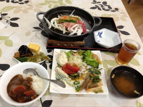 写真はカメラの自動補正で明るいが、実際は薄暗く深い森の中。 その風景はとにかく神秘的、異世界に迷い込んだような印象を受ける。 それだけ印象に残った道路。また走りたい。 R102とR103との交差点近くにある奥入瀬ガーデンで昼食。