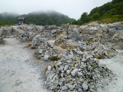 霊場として有名だが、大涌谷等の噴煙地の大きい版って感じ。 駐車場近くの売店では、線香の他に供養に使う風車や御札を販売してた。 ドコモの携帯が使えるという張り紙があったけど、互換SIMは圏外でした。