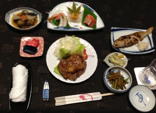 海峡ラインの後半は、山間のワインディング。 雨は無かったけど、2時間ほどかかって脇野沢に到着。 宿に到着したのは19時前、すぐに風呂に入る。 向かいに居酒屋があったので、夕飯はそこかな?と思ってたら 話を聞くと、昨日の夕方にした予約の電話を忘れてたみたい。 そして、今日来る予定だったけど別の日に変更した人が居て、 まぁ、こっちとしては2食付きでも問題無いのでプラン変更。