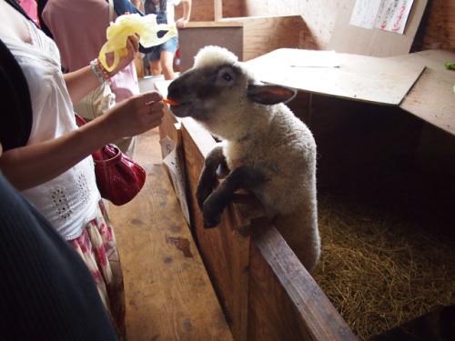 最初にレストハウスでいろいろと試食。 次に動物が居る厩舎へ。