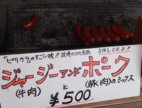 酸味の強いコーヒーの出来損ないみたいな感じで、美味しくないぞ。 ソフトクリームと迷いつつ、フランクフルトを食うことに。