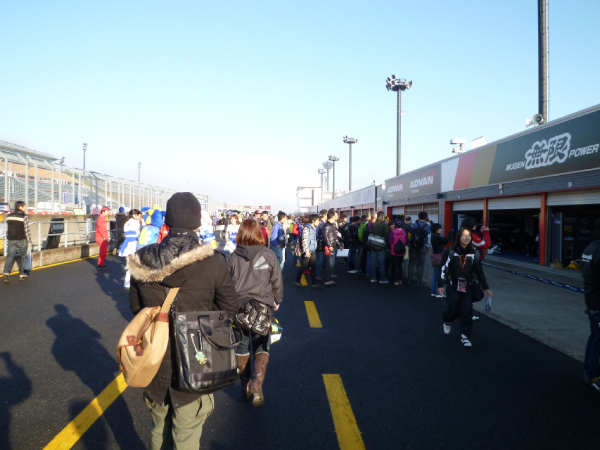 7:30頃にピットウォーク終了、上に移動を始める。 階段を上ってる時に、これから見ようと下りてくる人も多数。