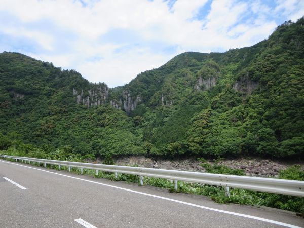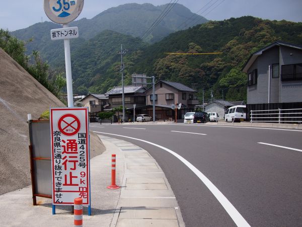 シンプルに 卵かけご飯+味噌汁+漬け物。 8時過ぎ、予定より30分ほど早めに出発。今日も、青空が見える良い天気だ。 ここも片側交互通行が多い。紀伊半島は岩山が多いからか、傾斜が急な印象。