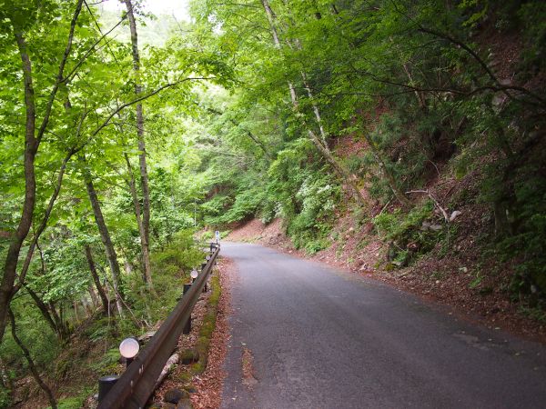 尾根に出るまでは、1.5車線のボロい道が続く。