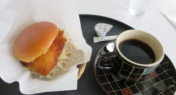 城の敷地内を散策した後、天守閣近くのベンチで朝食。