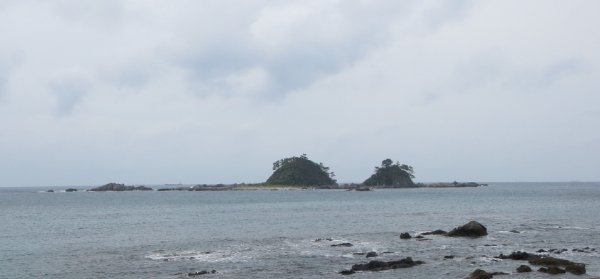 岩の間に落ちる夕日が有名らしく、画像検索すると沢山出てくる。 県道40に入り、橋を渡って紀伊大島へ。