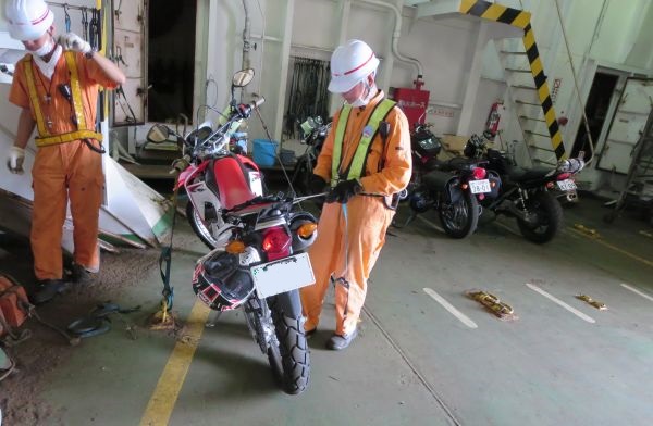 15時半頃で、フェリー出航まで時間があるので下道で埠頭へ向かう。 給油&コンビニに寄って、1時間前に到着した。 部屋は2等なので、先に乗った方が有利なんだけど