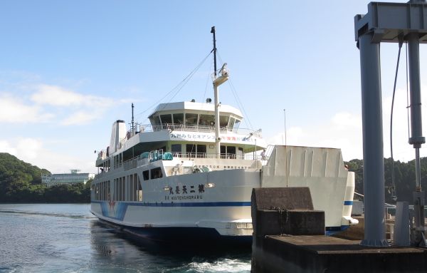 フェリーは前後対称な作りで、出入り口が前後はもちろん艦橋も前後にあった。 1時間ほどの船旅で、牛深港に到着した。 とりあえず、コンビニまで走って朝食を取る。 R266はそこそこ混んでるが、西海岸線を走るR389は空いてる。