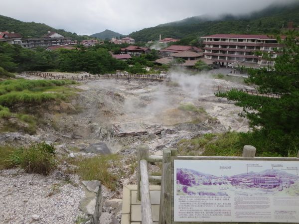 風呂上りに雲仙レモネード、あっさりした炭酸レモンな感じ。 雲仙地獄の滞在は3時間、雲仙岳の方は霧が立ち込めてるが、