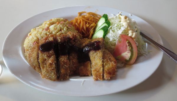 30分ほどで一回り、少し早いけど昼食に。 綺麗にまとまってるが、チキンカツなのがイマイチ。 外でメニューを見てたら店員が出てきたので、何が乗ってるか聞くと