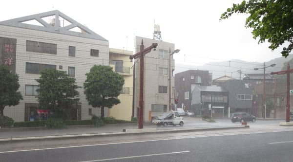 激混みのR57-R251を走り、長崎の市街地へ。 パラパラと来たときは大丈夫と思ったが、遠くを見ると降りまくりだった。